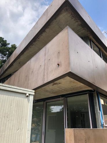 Edificio realizzato con casseri faccia vista e spigoli vivi
